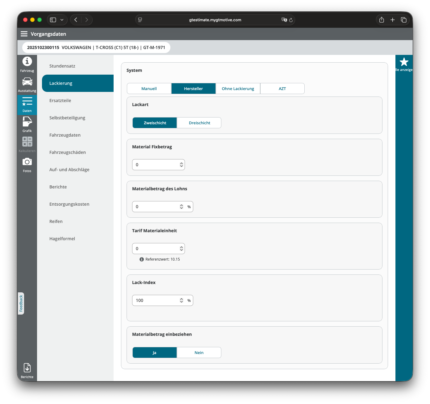 Lack-Index modifiziert die ausgewiesenen Lackiermaterialkosten auf die individuellen Gegebenheiten.