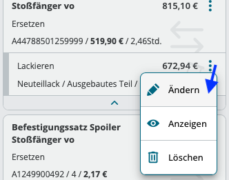 Nun werden diese entsprechend der Eingabe in der Ersatzteilliste aufgeführt.