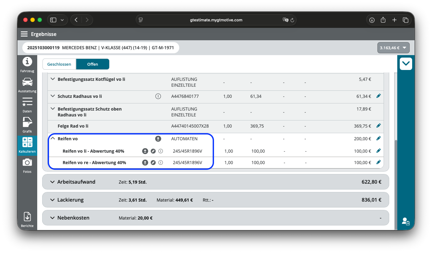 In diesem Artikel gehen wir auf die Eingabe möglicher Abzüge für den Schadenfall in GT Estimate ein, zunächst Abwertungspositionen und schließlich die Selbstbeteiligung.