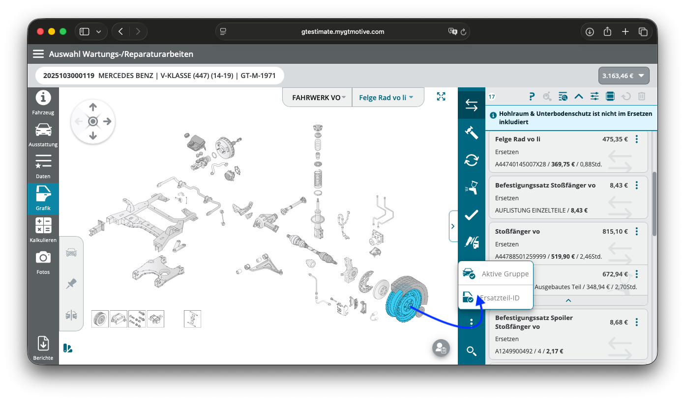 - Ersatzteil-ID zeigt Dir alle Ausstattungsoptionen an, die für das aktuell gewählte Teil relevant sind.
